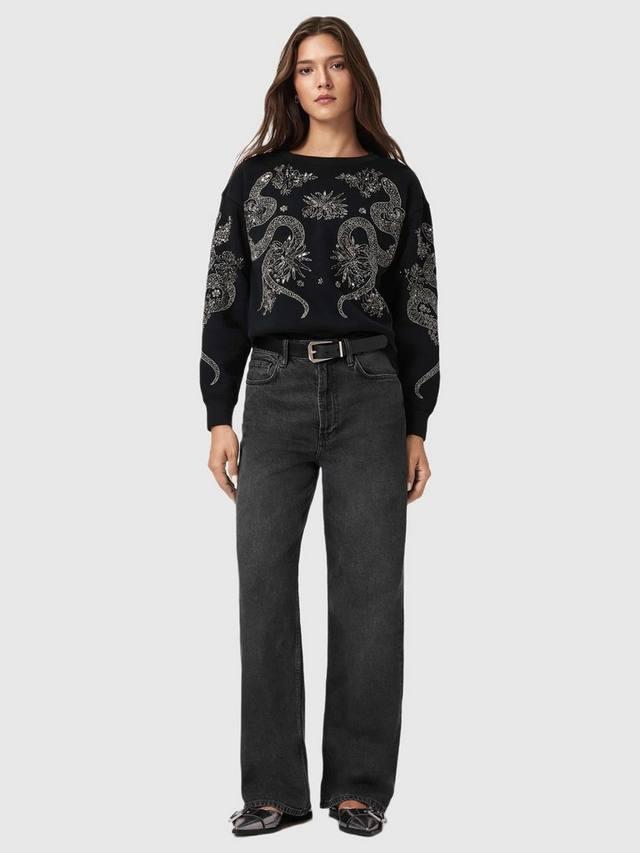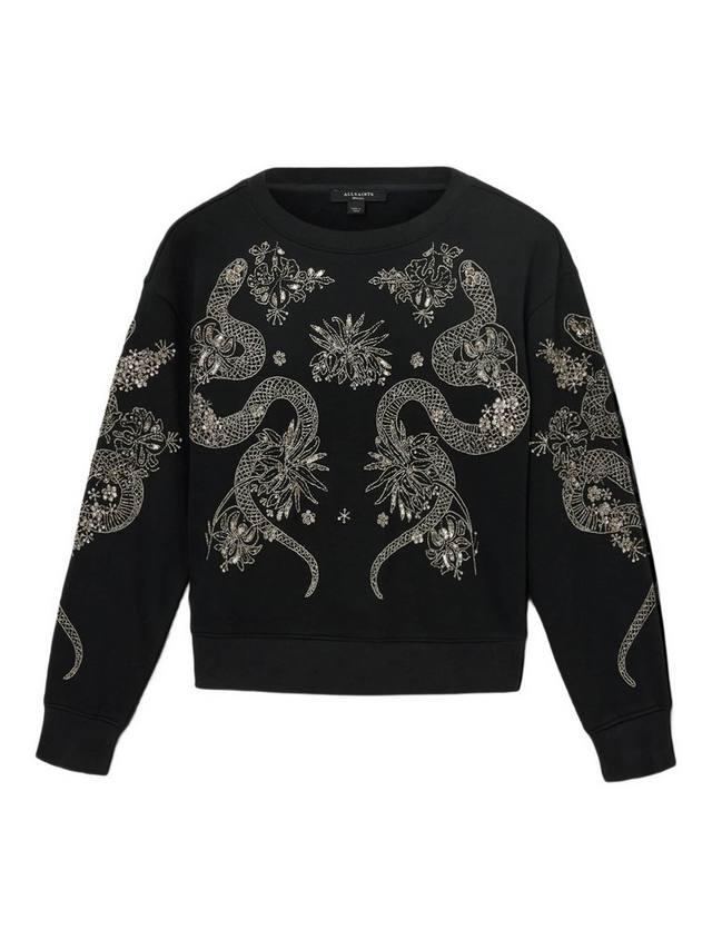 Эта толстовка, выполненная в стиле хенд-мейд, украшена абстрактным узором в виде змеи. Круглый вырез горловины обеспечивает комфорт, а длинные рукава обеспечивают повседневную универсальность. Это простое решение для повседневных дел.