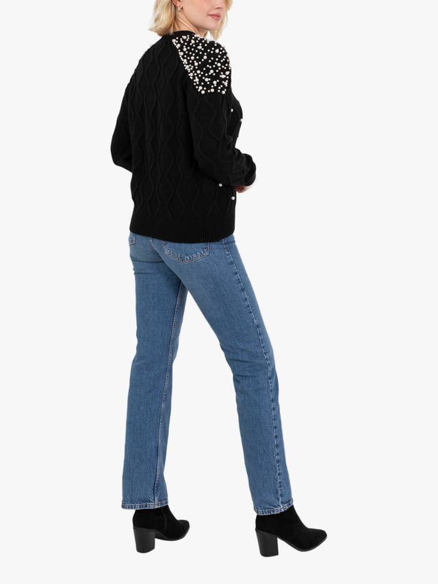 Ищете уютный и стильный многослойный предмет гардероба для особых случаев? Этот джемпер идеально подходит вам благодаря смешанному вязаному узору и отделке жемчугом на спущенных плечах и лифе спереди. Для романтического свидания наденьте этот джемпер с кожаной юбкой-карандаш и каблуками, чтобы создать незабываемый образ.