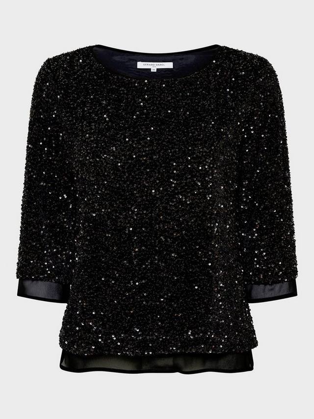 Рукава три четверти и декоративные детали придают этой блузке элегантный и освежающий вид, идеально подходящий для оживленных встреч или ярких рабочих моментов.