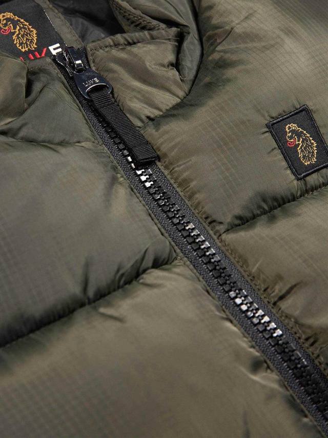 Утеплённый жилет ATAKA станет незаменимым предметом гардероба в этом сезоне. Он полностью утеплён переработанными тёплыми материалами, что делает его незаменимым в самые холодные дни на террасах. Это невероятно универсальный предмет одежды, который можно сочетать с любым зимним нарядом. Жилет имеет два нижних кармана на молнии и украшен культовой тканой эмблемой бренда в виде головы льва на левой стороне груди.