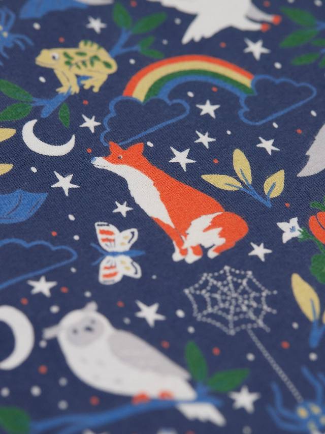 Это платье стандартной длины с расклешенным кроем украшено ярким сочетанием анималистичных, пейзажных, радужных и звездных узоров. Мягкий флис с начесом на изнанке и длинные рукава обеспечат комфорт для активных и творческих дней.