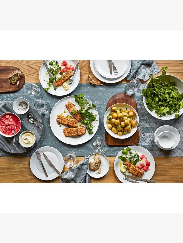 Сервировочная чаша из нашей коллекции Design Project by John Lewis, вдохновленная японскими дзен-садами, которые исследуют взаимосвязь прямых линий и изгибов. Узор достигается с помощью изящной техники тиснения.