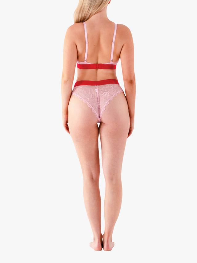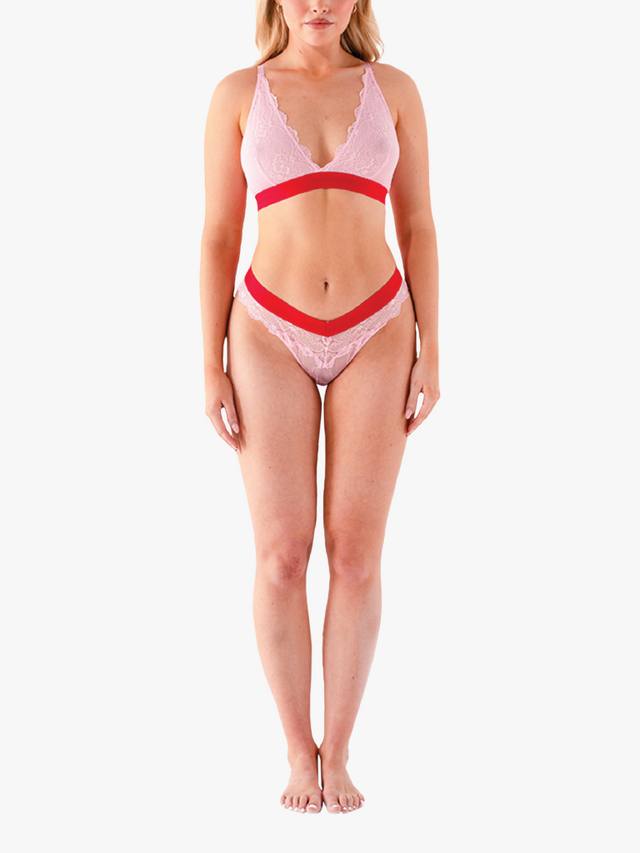 Бюстгальтер-бралетт Cherry Blossom Pink, выполненный из фирменного кружева, несомненно, украсит ваш ящик с нижним бельём. Регулируемые лямки, застежка на 2 крючка и петли, контрастная красная резинка Lemonade.