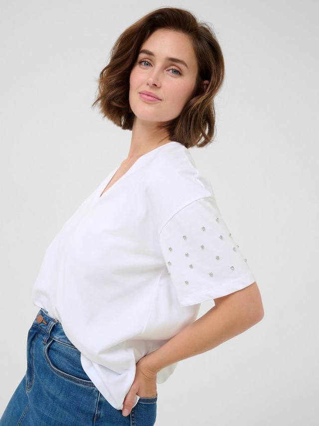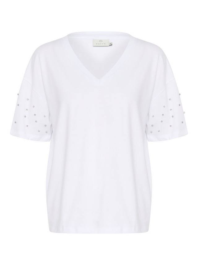 Эта футболка от KAFFE, которая дополнит вашу повседневную коллекцию, изготовлена из 100% хлопка для комфорта и отличается стильным V-образным вырезом с декоративными рукавами.