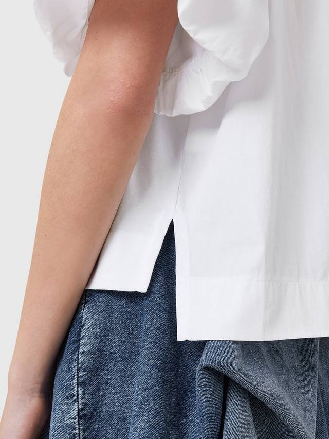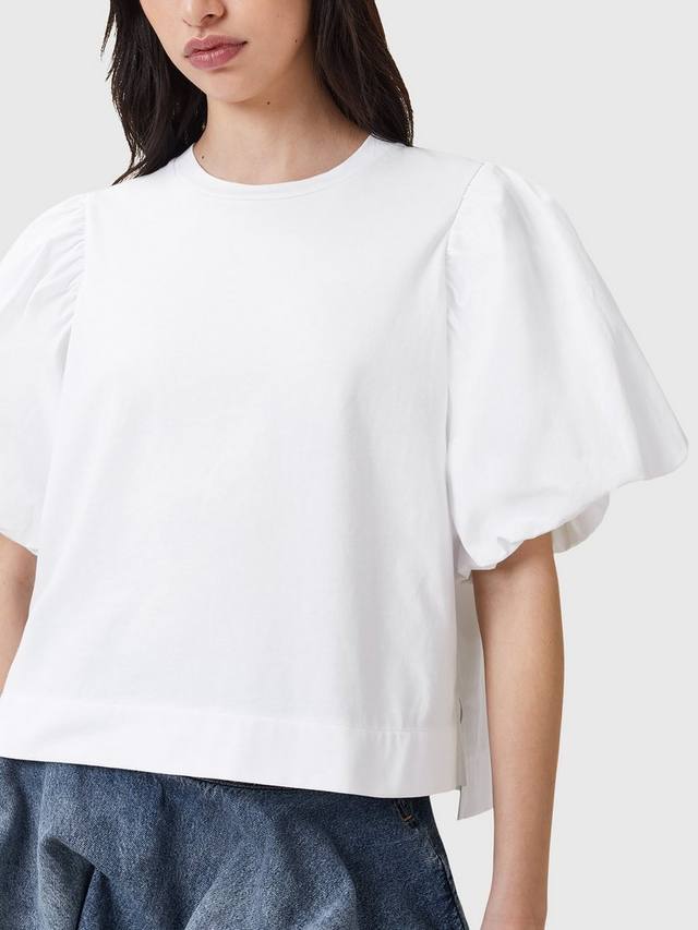 Эта футболка от AllSaints, которую можно носить как самостоятельно, так и в составе многослойного гардероба, однотонная и легко комбинируется. Простой крой, круглая горловина и короткие рукава-буфы, футболка изготовлена из мягкого и дышащего органического хлопка.