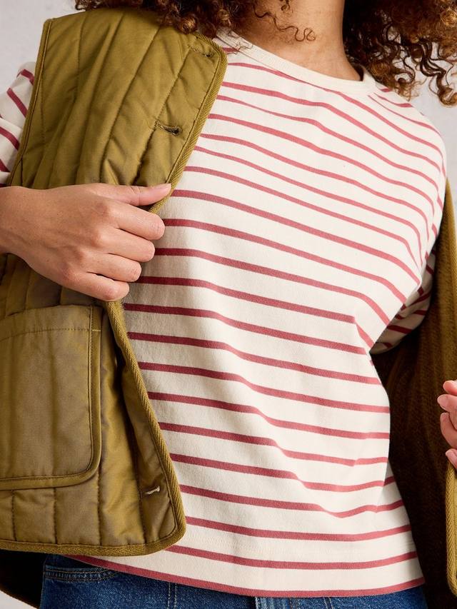Полосатая футболка White Stuff из 100% органического хлопка обеспечит повседневный комфорт с изящной изюминкой. Рукава до локтя и круглый вырез обеспечивают комфорт, а игривые полоски добавят индивидуальности вашему дню.