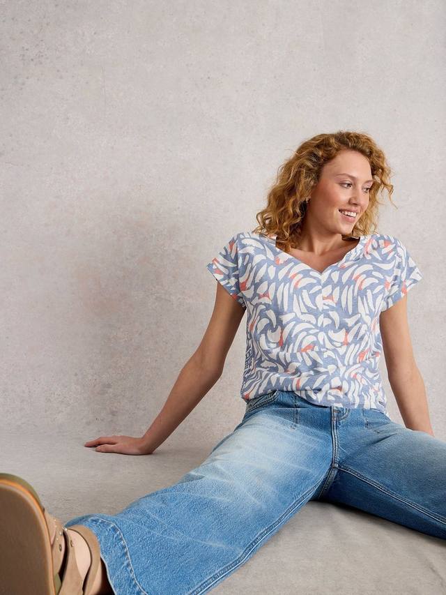 Эта футболка от White Stuff идеально подходит для повседневного ношения благодаря своему абстрактному принту. Футболка с V-образным вырезом и короткими рукавами выполнена из хлопка для комфортной носки.