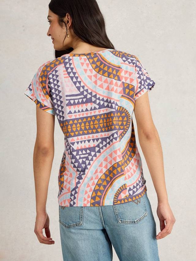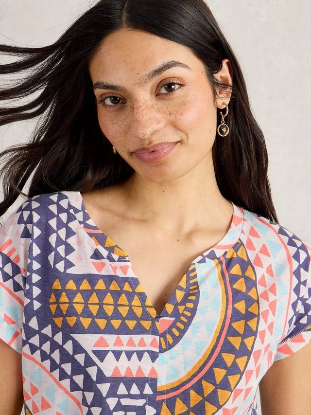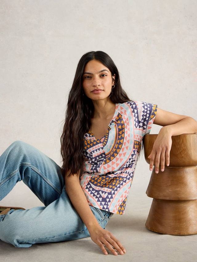 Эта футболка от White Stuff, дополняющая вашу коллекцию, добавит игривости любому образу благодаря своему абстрактному принту. Футболка с V-образным вырезом и короткими рукавами выполнена из чистого хлопка для комфорта и воздухопроницаемости.