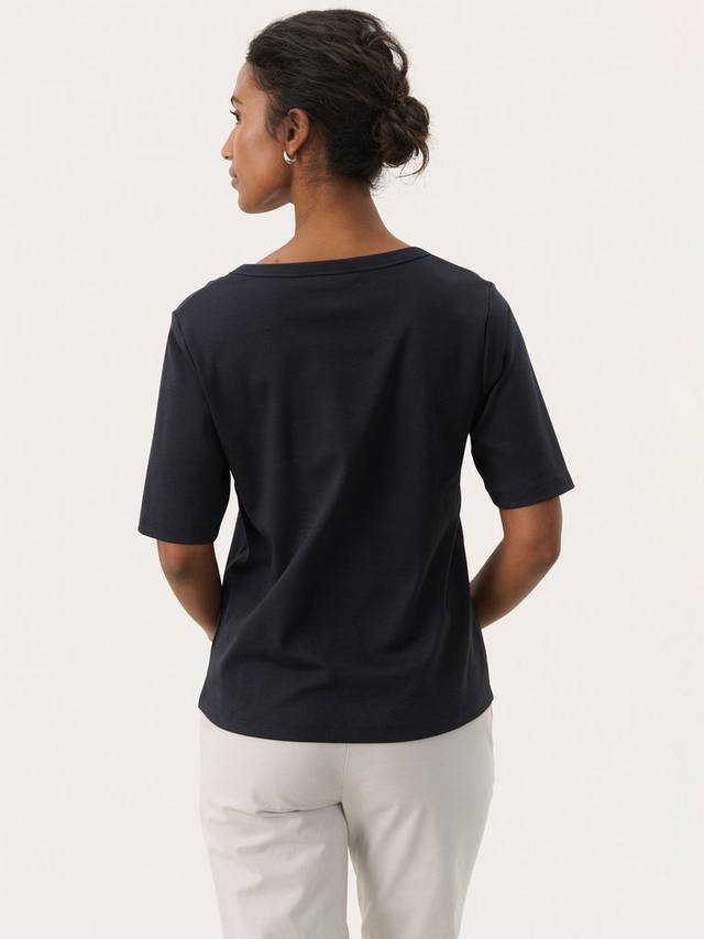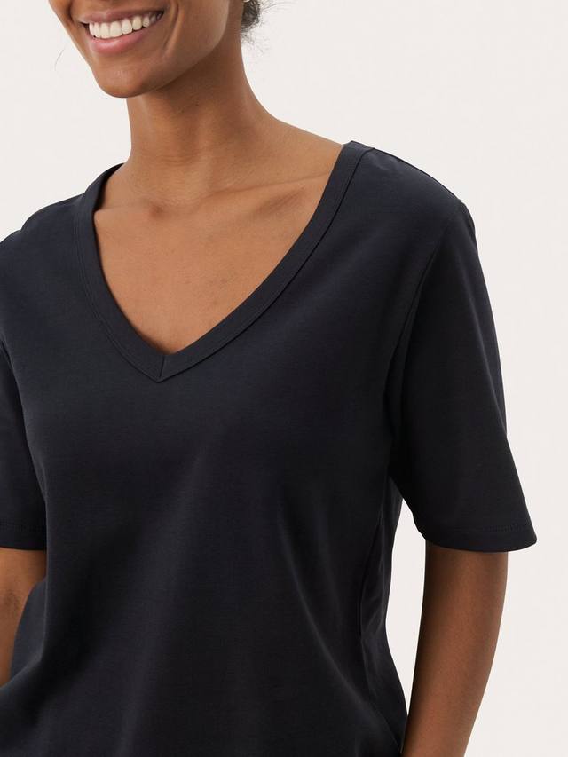 Футболка из органического хлопка с V-образным вырезом, которая обеспечит комфорт и элегантный стиль в напряженные дни. Легкая, дышащая ткань сохранит прохладу, а простой крой отлично сочетается с чем угодно.