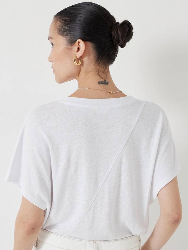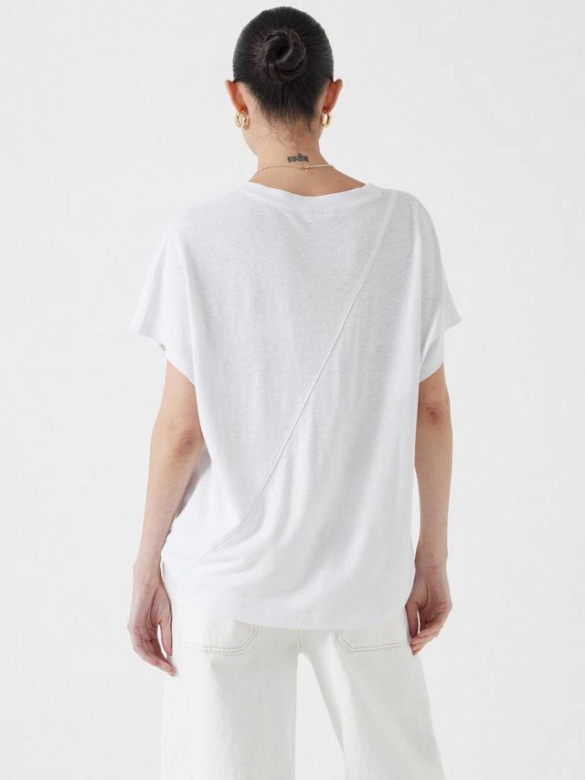 Погода в футболке просто великолепна, а когда надеваешь футболку Rosalia от HUSH из прохладной льняной ткани, чувствуешь себя ещё лучше. Благодаря широким рукавам-драпировкам она идеально подходит для очень жарких дней, а диагональный шов на спине добавляет ей современный вид.