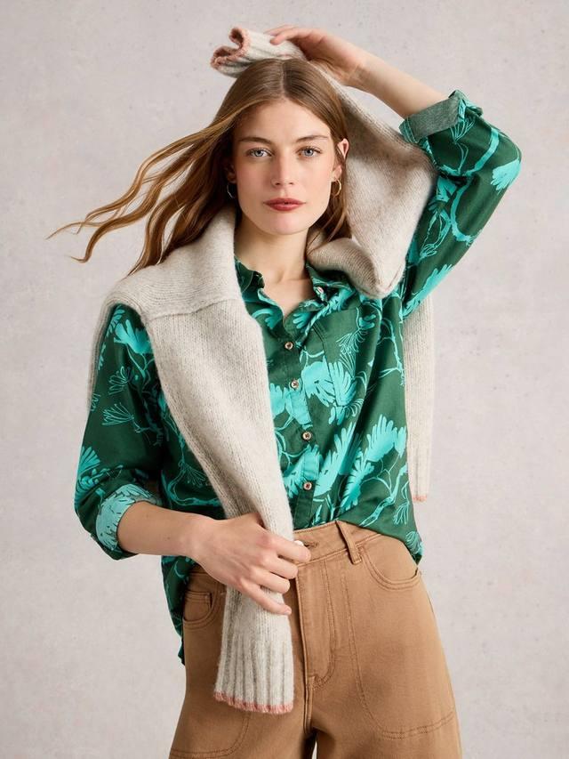 Блузка из органического хлопка от White Stuff с воротником и длинными рукавами, напоминающая о природе своим принтом.