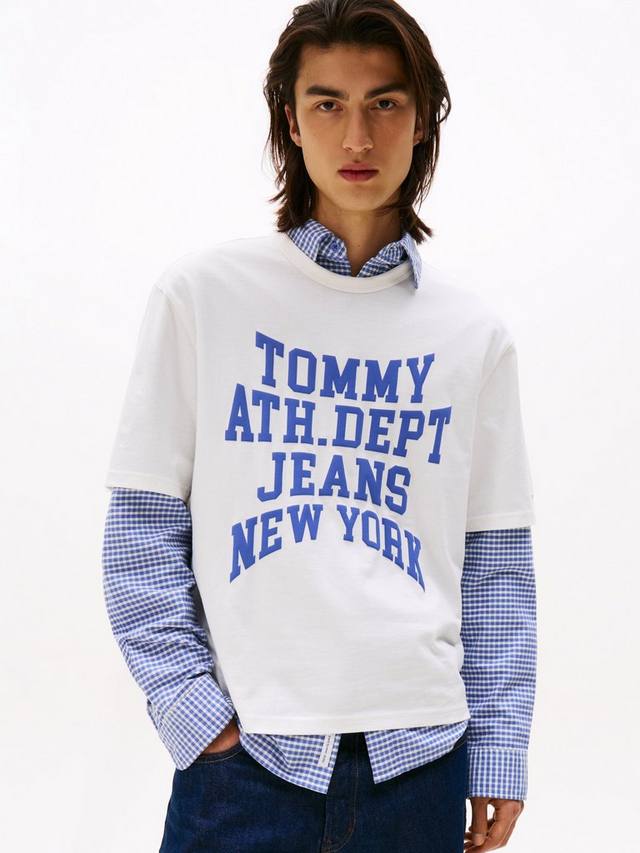 Футболка Tommy Jeans Regular Fit с ваarsity логотипом Tommy Hilfiger, Ecru
