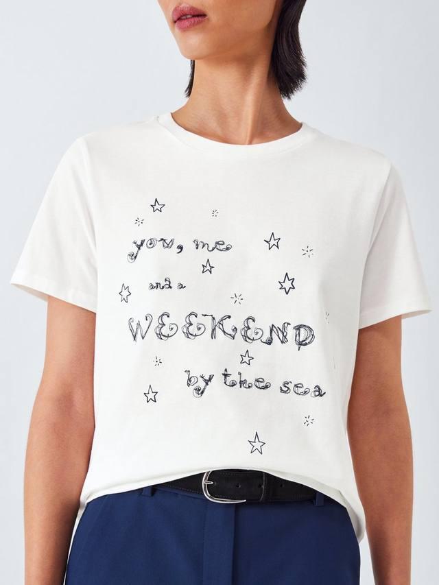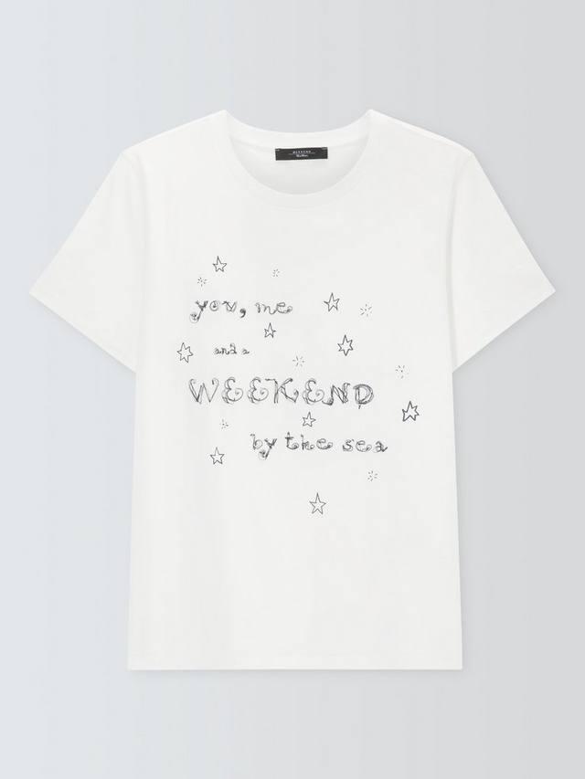 Хлопковая футболка Weekend MaxMara украшена ярким слоганом и обеспечивает комфорт и остроумие в равной степени, готовая сочетаться с вашими любимыми образами.
