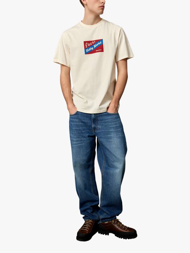 Вдохновленная вывеской винтажного рынка товаров для хобби, работа воплощает дух размеренной, размеренной жизни. Эта футболка входит в коллекцию, которая воспевает повседневные ритуалы рыбалки, наблюдения за птицами, коллекционирования марок, заваривания кофе и гребли — все вечные хобби, которые напоминают нам о красоте в простоте. Изготовленная из мягчайшего хлопка, она напоминает нам о необходимости отойти от цифровых технологий, погрузиться в физическое и найти радость в ритме классических занятий.