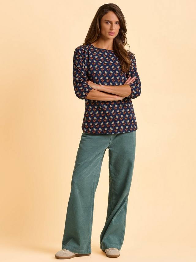 Нарядитесь в нежные осенние тона с футболкой Freya с длинным рукавом. Футболка из 100% хлопкового трикотажа с приглушенным принтом в виде листьев и застегивающимся на пуговицы вырезом сзади создают изысканный образ. Свободный А-образный силуэт и эластичные рукава ¾ делают эту футболку невероятно удобной и подходящей для многослойного ношения.