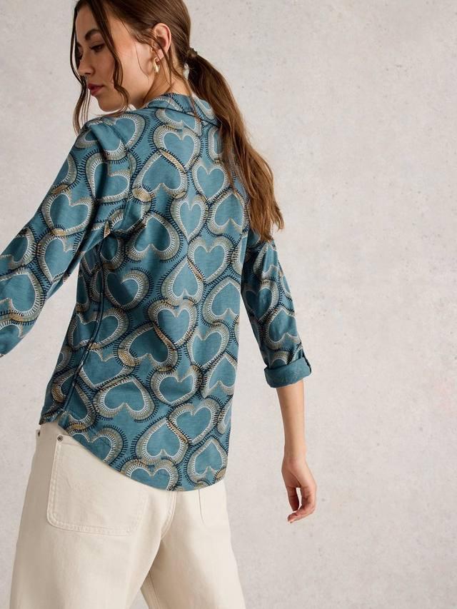 Эта блузка оживит ваш повседневный стиль благодаря игривому сердечку и V-образному вырезу. Мягкий хлопок обеспечит вам комфорт, а продуманные пуговицы добавят практичности.