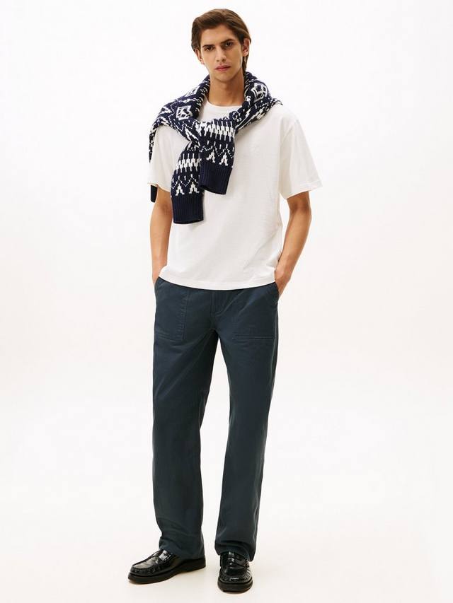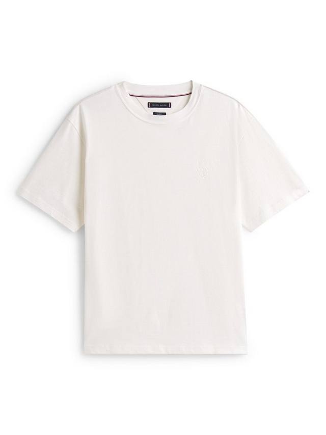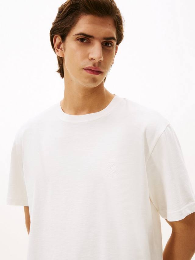 Эта футболка с круглым вырезом украшена вышивкой в тон цвета на груди, что отсылает к университетскому тренду.