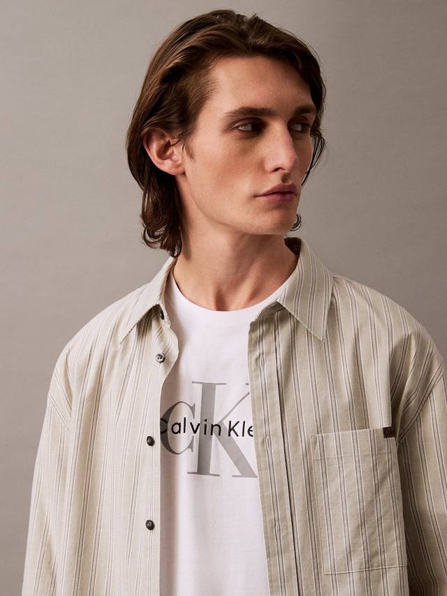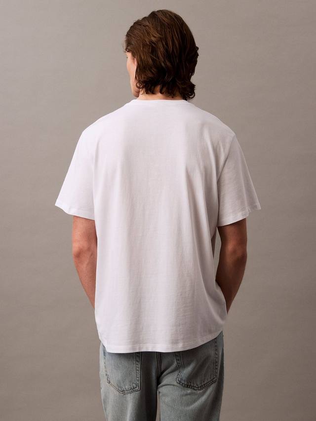 Хлопковая футболка с круглым вырезом от Calvin Klein. Футболка с монограммой, напечатанной трафаретом, создаёт культовый вневременной дизайн. Удобный крой, более свободный, чем классические модели.
