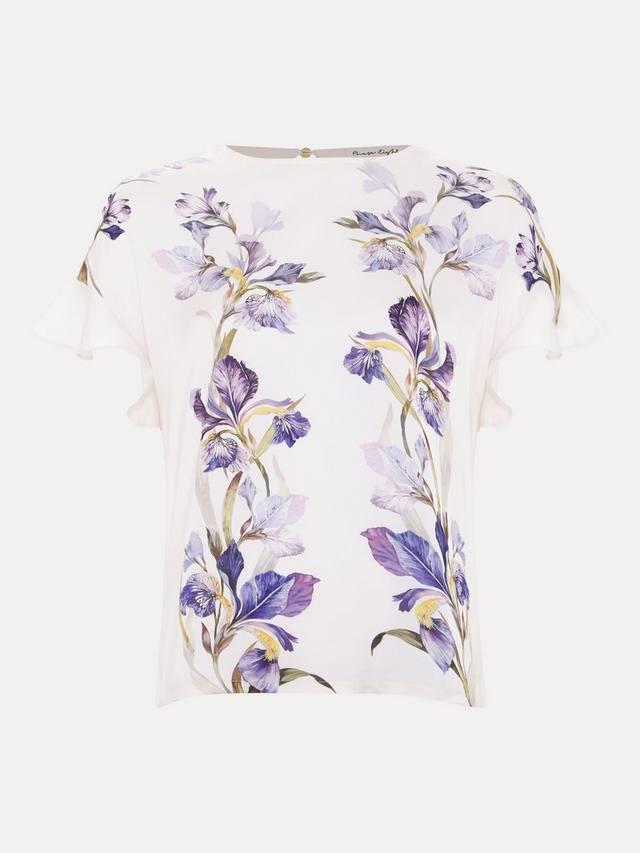 Свежая весенняя версия классической футболки. Модель с потрясающим цветочным принтом дополнена мягкими оборками на рукавах, что придает ей женственности. Мы сочетаем эту футболку с джинсами и сандалиями для создания повседневного образа.