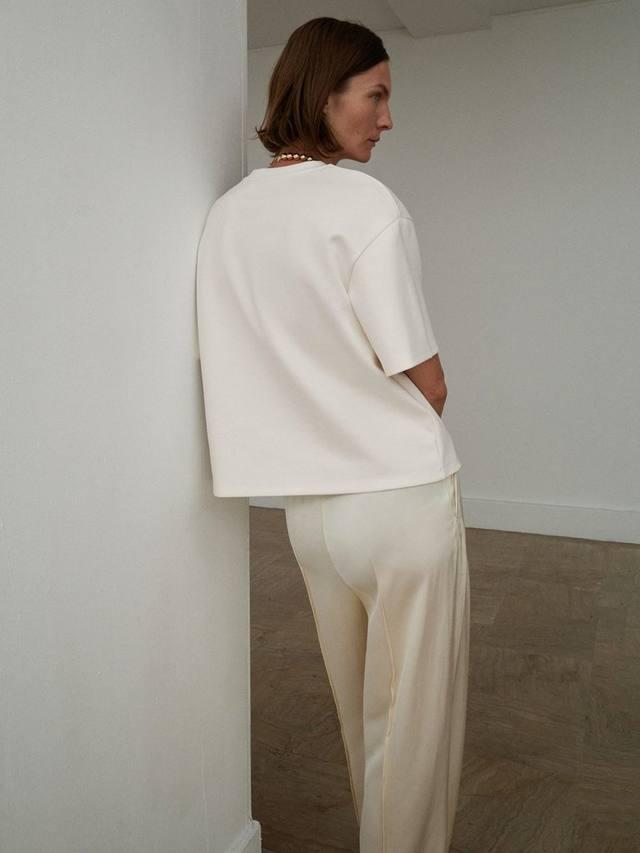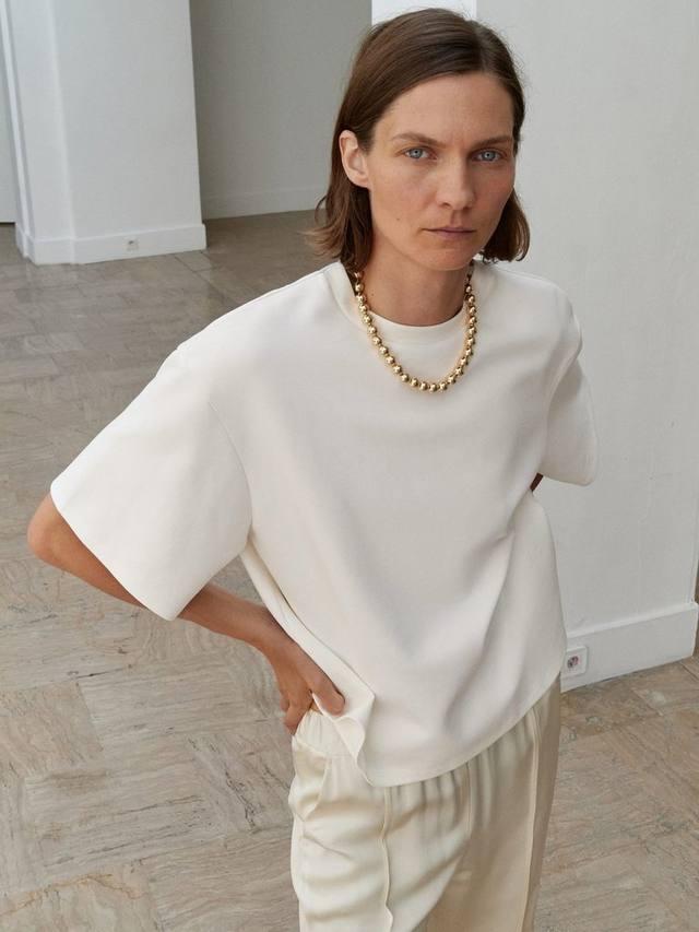 Повседневная футболка Mango из хлопковой смесовой ткани обеспечивает мягкость. Благодаря круглому вырезу и свободному крою, футболка обеспечивает шикарный комфорт.