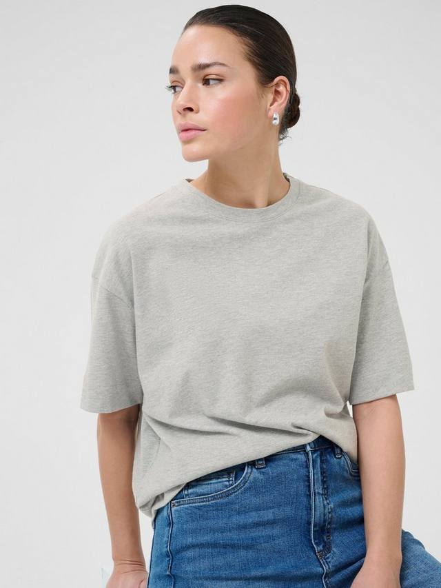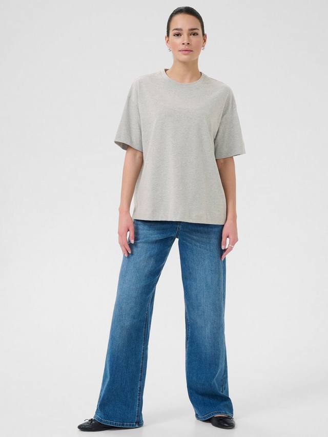Повседневная футболка KAFFE Curve из мягкой хлопковой смесовой ткани. Модель имеет круглый вырез горловины и короткие рукава, а также свободный крой.