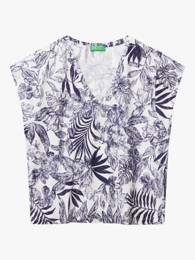 Эта футболка с принтом в виде листьев от Benetton станет основой любого вашего образа. Она изготовлена из 100% хлопка, имеет классический V-образный вырез и короткие рукава.