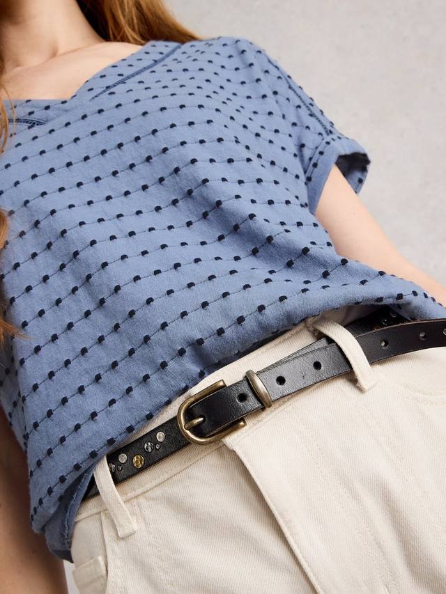 Вышитая полосатая футболка от White Stuff из органического хлопка с V-образным вырезом и короткими рукавами.