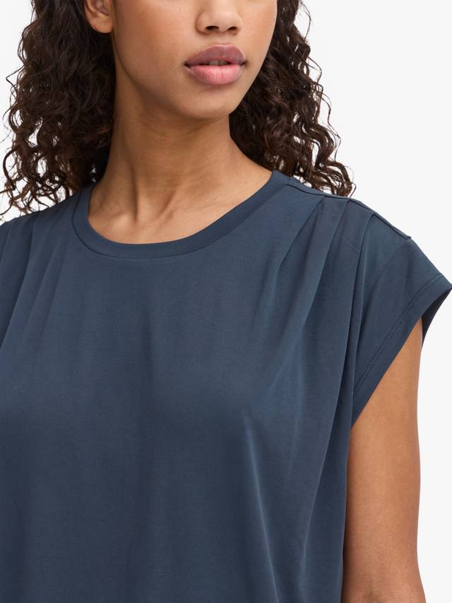 Эта футболка от ICHI идеально дополнит ваш повседневный гардероб. Классический крой, круглый вырез горловины и рукава-крылышки, а также супермягкий модал.