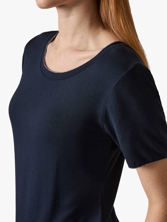 Эта футболка с короткими рукавами от James Lakeland сочетает в себе простоту и элегантность. Изящная отделка по вырезу и рукавам добавляет лёгкий блеск классическому силуэту. Свободный крой и дышащая ткань обеспечивают комфорт в течение всего дня, сохраняя при этом изысканный вид.