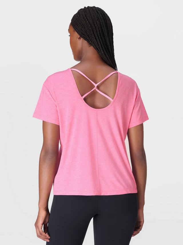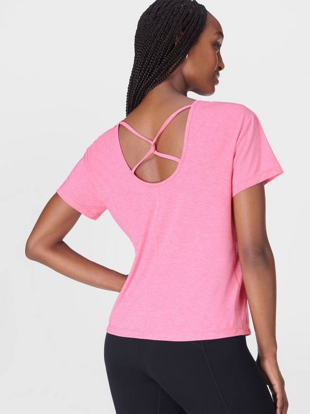Женственная новинка в любимой коллекции с низким уровнем воздействия. Изготовлена из ультрамягкой смеси 72% переработанного полиэстера и лиоцелла. Свободный крой, классический круглый вырез горловины и открытая спина с перекрученными деталями.