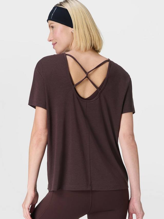 Женственная новинка в любимой коллекции с низким уровнем воздействия. Изготовлена из ультрамягкой смеси 72% переработанного полиэстера и лиоцелла. Свободный крой, классический круглый вырез горловины и открытая спина с перекрученными деталями.