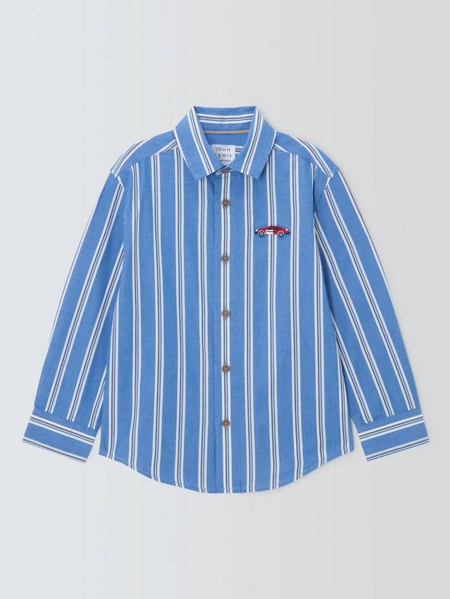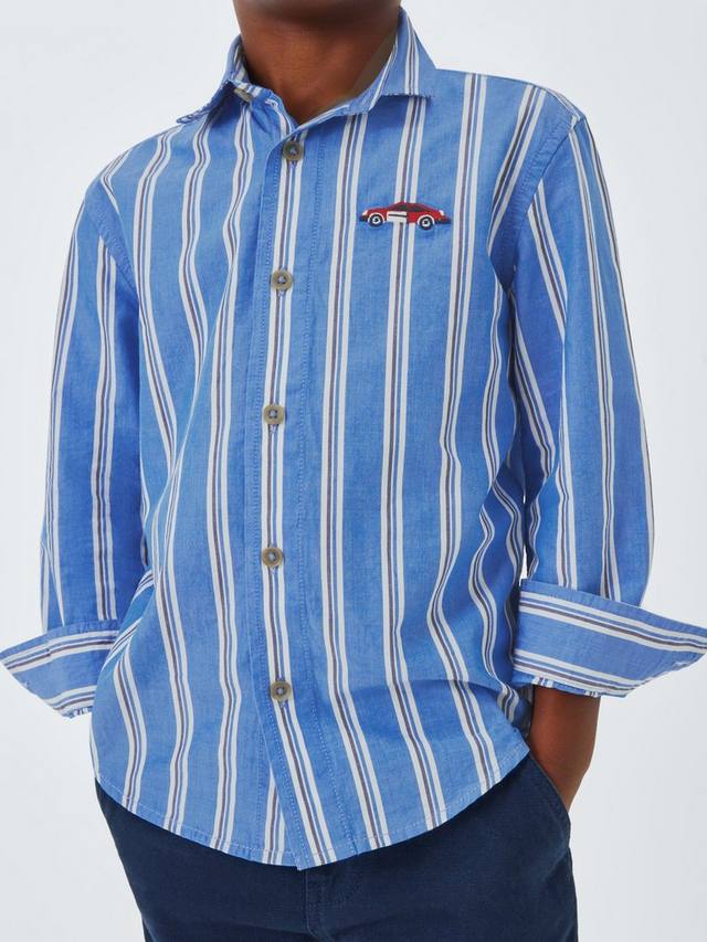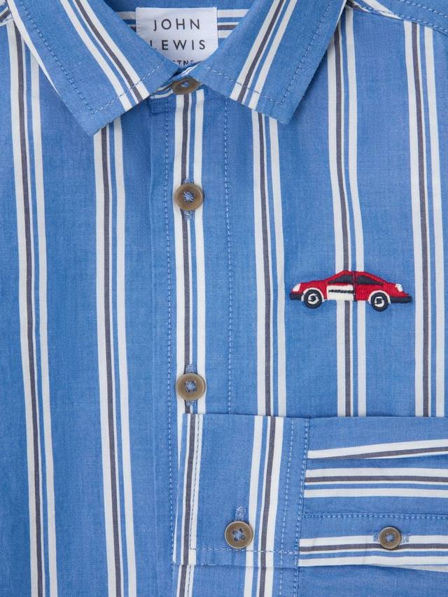 Эта рубашка с длинными рукавами из чистого хлопка, созданная специально для автолюбителей, украшена полосками по всей поверхности и забавной вышивкой с изображением машин.