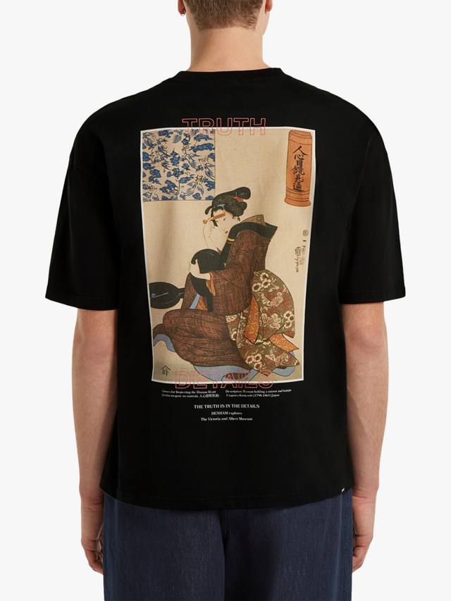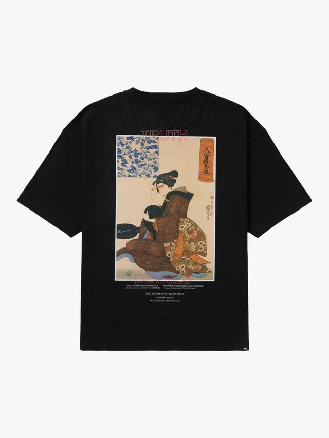 Футболка DVA Jinshin разработана совместно с Музеем Виктории и Альберта. Свободный крой с высококачественной гравюрой на дереве из серии Объектив на сердце человека Утагавы Куниёси.