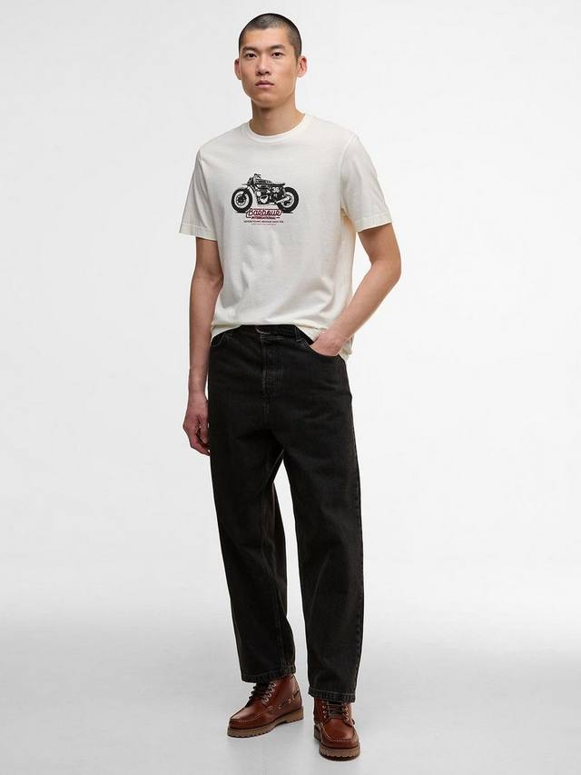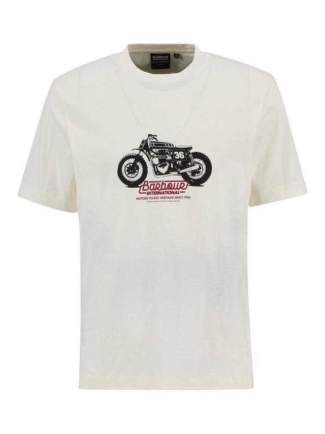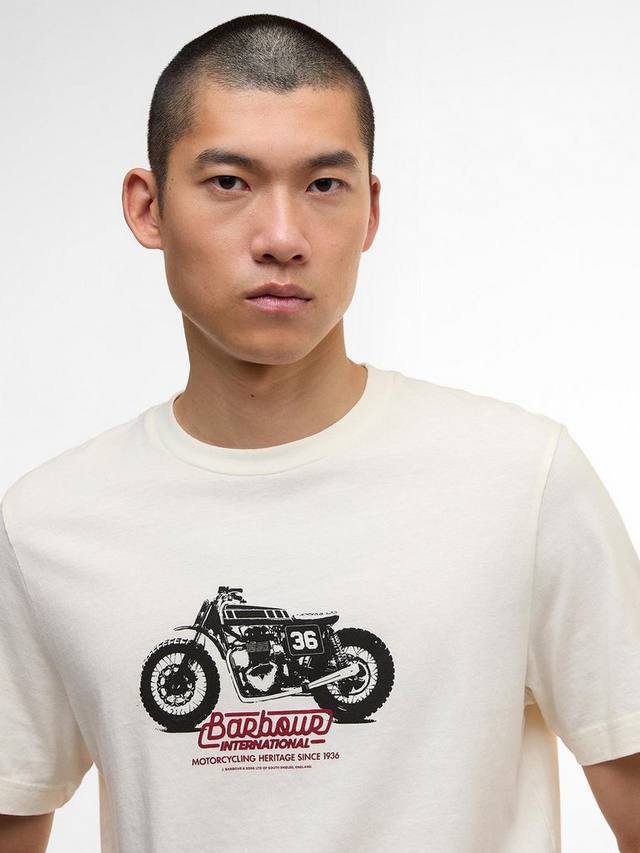История Barbour International началась в 1936 году, когда Дункан Барбур, представитель третьего поколения семьи Барбур и страстный мотоциклист, разработал цельный вощеный хлопковый костюм для международных шестидневных гонок. Футболка с принтом B.Intl Cruise Graphic отдает дань уважения этому году, положившему начало всему.