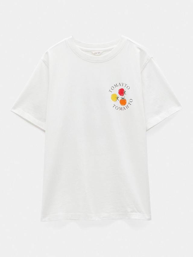 Как правильно произносить – томайто или томахто? В любом случае, в этом сезоне мы добавим в свой гардероб эту футболку с короткими рукавами и принтом. Она будет носиться в обычные дни, когда в наших планах только и есть, что перекусить чем-нибудь холодненьким из фургончика с мороженым. Она сшита из чистого хлопка, что создаёт ощущение изысканности, и нам нравится, что принт спереди и сзади виден со всех сторон.