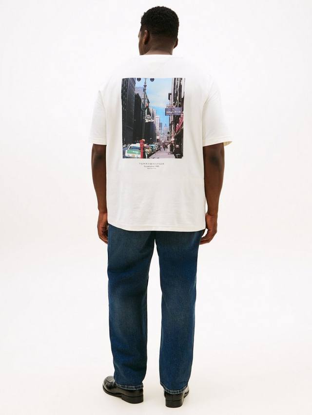 Эта футболка прямого кроя из чистого хлопкового трикотажа — стильная и универсальная вещь. Круглый вырез горловины украшен логотипом Tommy Hilfiger на груди, эффектным фотопринтом New York на спине и фирменным логотипом внутри выреза.