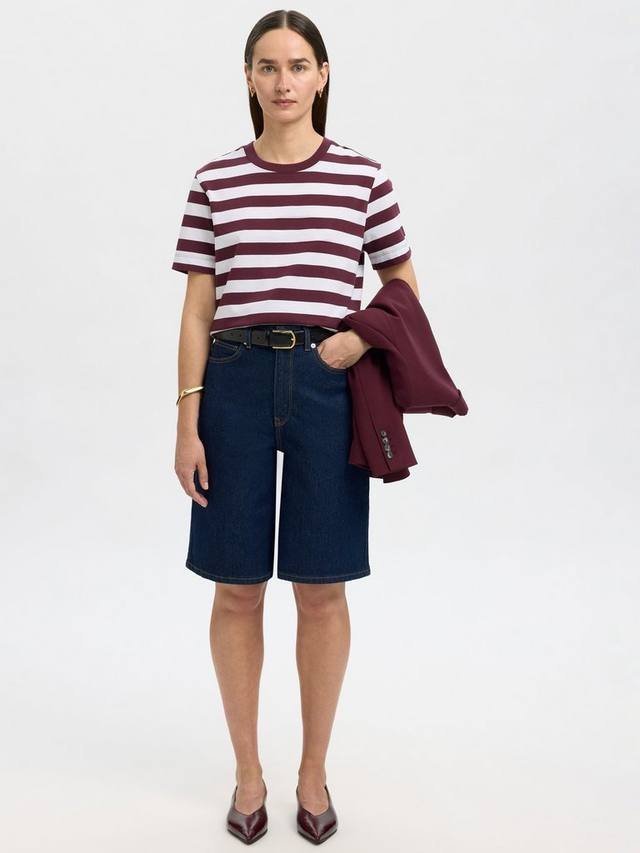 Эта полосатая футболка прямого кроя обеспечит свежесть и комфорт. Короткие рукава и классический круглый вырез горловины обеспечат комфортный образ как для насыщенных будней, так и для отдыха, делая каждый наряд по-настоящему вашим.