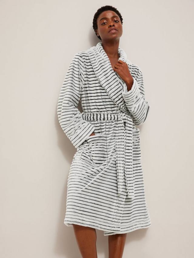 Мы создали этот невероятно уютный халат из мягкого матового флиса с фактурной резинкой. Благодаря поясу на завязке, накладным карманам и толстому воротнику, он станет идеальным спутником для прохладных вечеров, проведенных на диване.