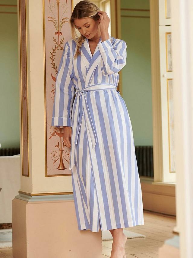 Великолепная удлинённая модель сшита из той же ткани, что и для продукции собственной марки Jermyn Street. Изысканное платье из 100% хлопка с непреходящим свежим полосатым узором идеально дополняется французскими швами и окантовкой по воротнику, манжетам и поясу. Кроме того, оно имеет внутренние завязки и два внутренних кармана.