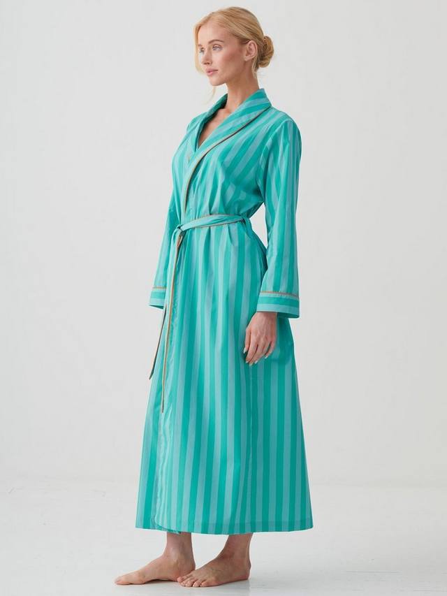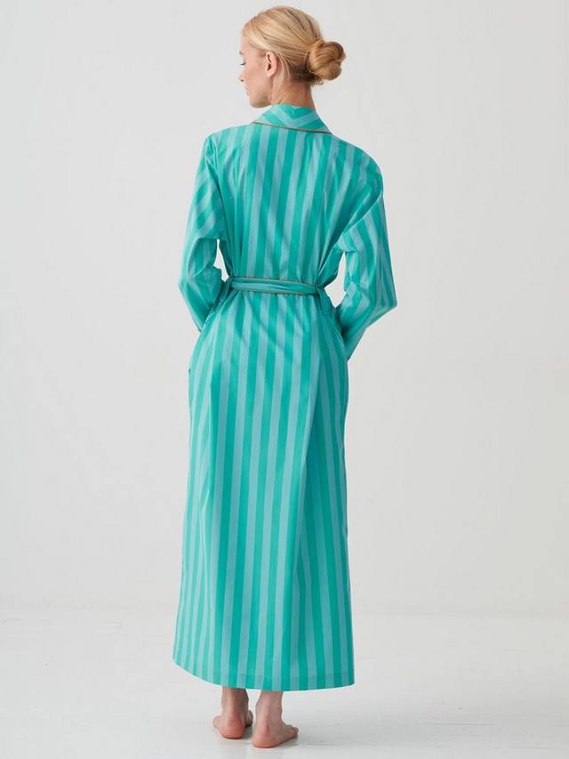 Великолепная удлинённая модель сшита из той же ткани, что и для продукции собственной марки Jermyn Street. Изысканное платье из 100% хлопка с непреходящим свежим полосатым узором идеально дополняется французскими швами и окантовкой по воротнику, манжетам и поясу. Кроме того, оно имеет внутренние завязки и два внутренних кармана.