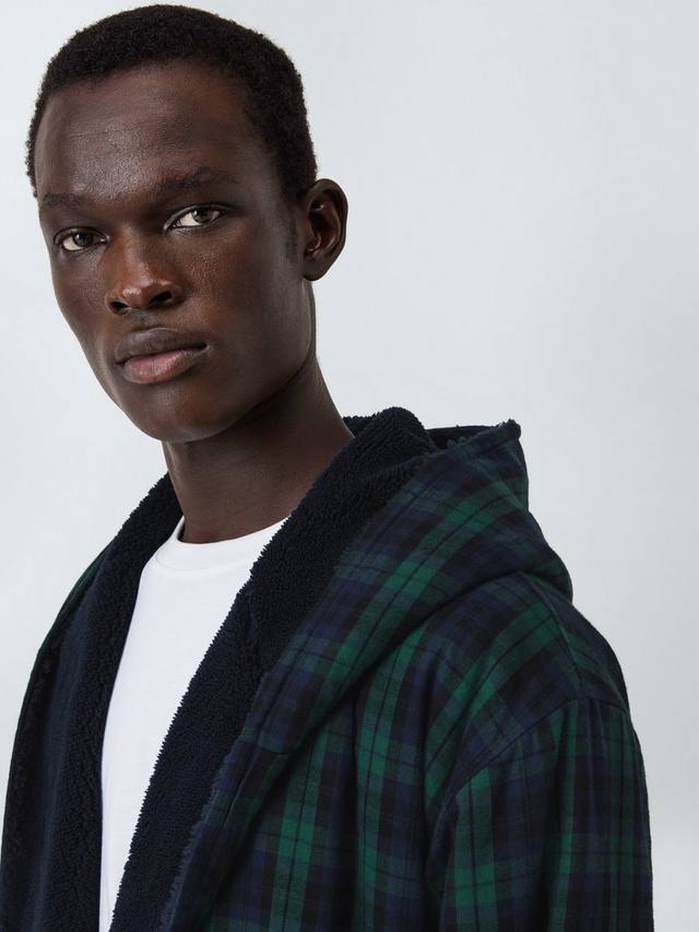 Наш халат из мягкого и тёплого хлопкового флиса с вместительными передними карманами, завязывающимся поясом, удобным капюшоном и клетчатым узором. Что лучше надеть утром или перед сном?