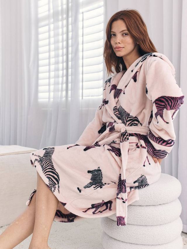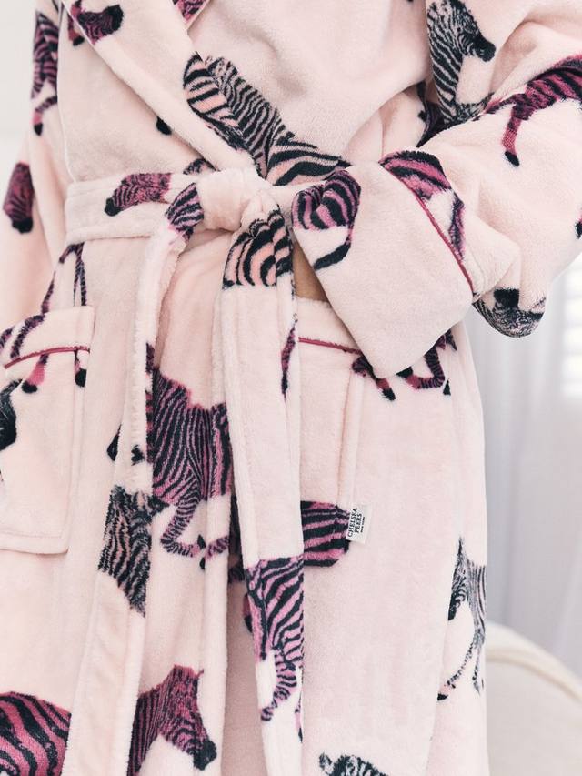 Окутайтесь в уют и комфорт с фирменным принтом Зебра от Chelsea Peers. Этот теплый и мягкий халат с капюшоном из флиса идеально подходит для ношения поверх вашей любимой пижамы. Благодаря поясу на завязках и практичным накладным карманам, он сочетает в себе повседневную простоту и эксклюзивный стиль.