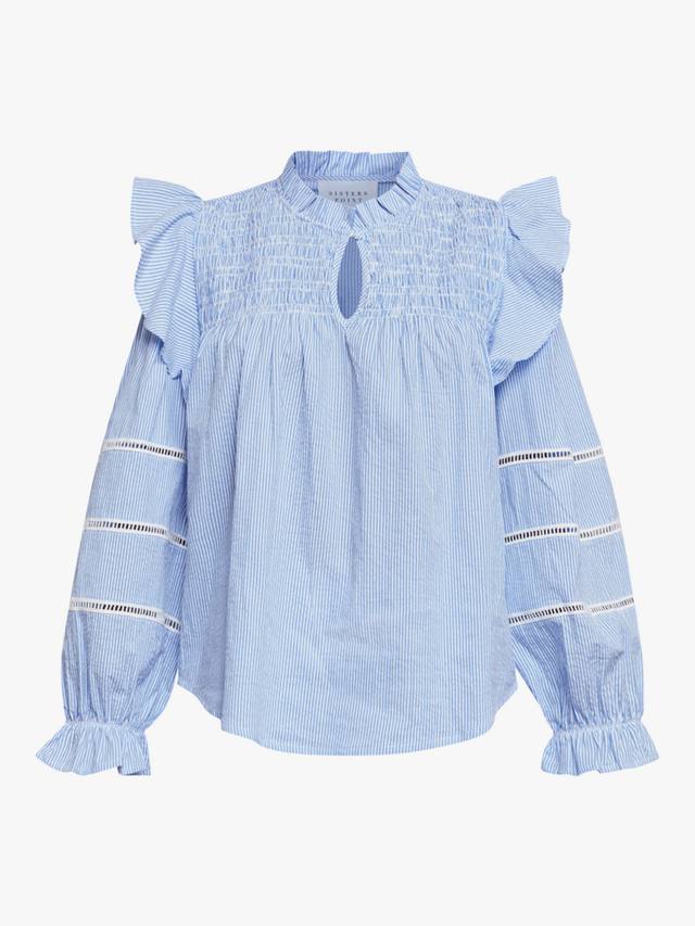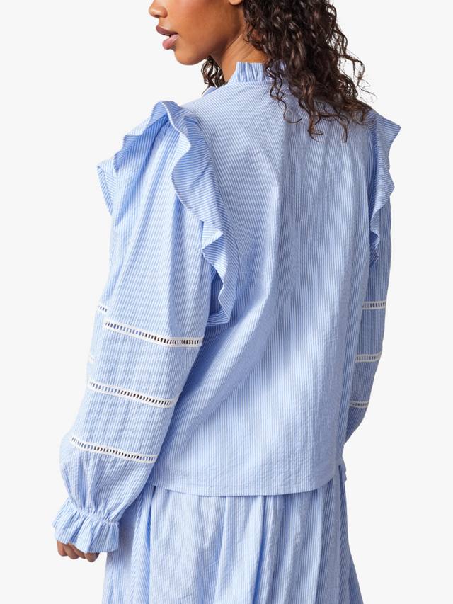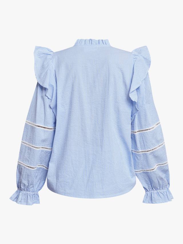 Vysla — шикарная хлопковая блузка с нежными полосками, высоким воротом и декоративными рукавами, которая подойдет как для повседневных, так и для полуофициальных мероприятий. Идеальный способ обновить гардероб в этом сезоне.