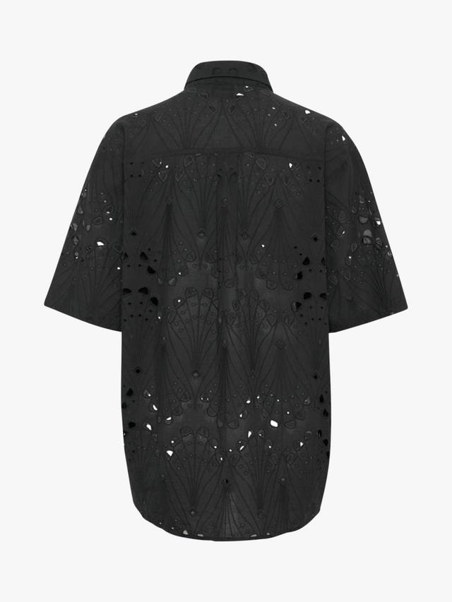 Эта удлиненная рубашка от Gestuz выполнена из 100% хлопка с вышивкой по всей поверхности. Благодаря воротнику и коротким рукавам она идеально подходит как для повседневных выходов, так и для стильного офисного ношения.