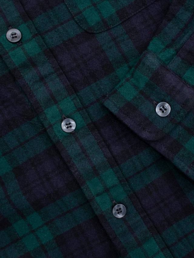Эта рубашка, сочетающая в себе прочность и повседневный стиль, изготовлена из прочной, плотной клетчатой ткани. Она имеет классический крой, что делает её идеальной для ношения в сочетании с другими вещами или отдельно. Ткань обработана начесом для создания аутентичного, поношенного вида, а воротник на пуговицах и роговые пуговицы добавляют изысканный штрих.