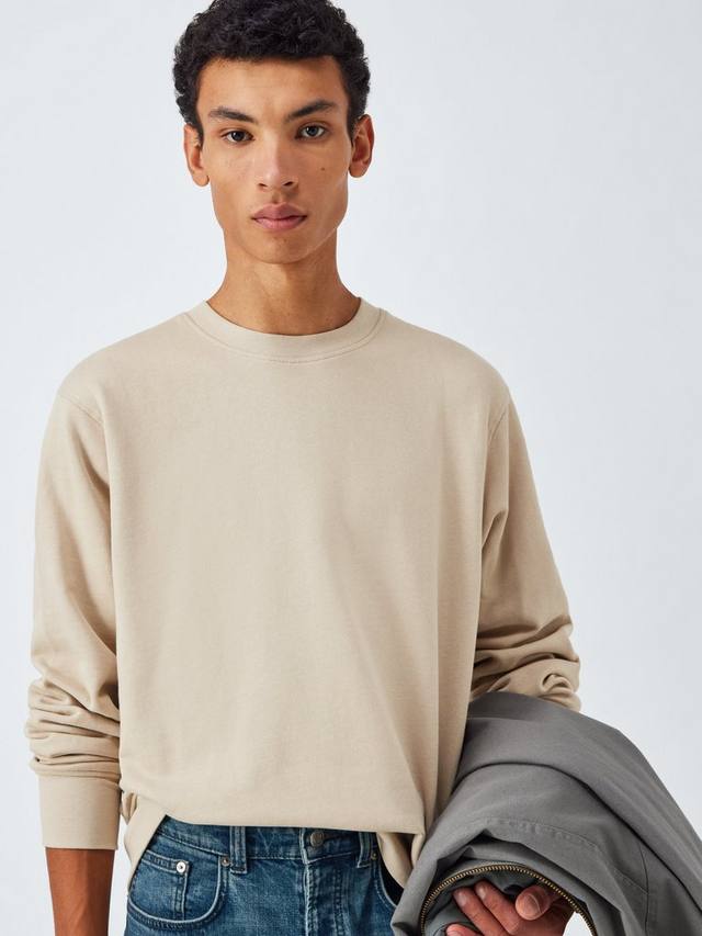 Хлопковый трикотажный свитшот с классическим круглым вырезом. Мягкая и дышащая ткань создает универсальный, обтекаемый дизайн, который обеспечивает комфортное тепло без лишнего объема. Идеально подходит для повседневной носки и в качестве слоя под курткой.