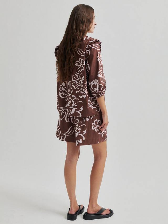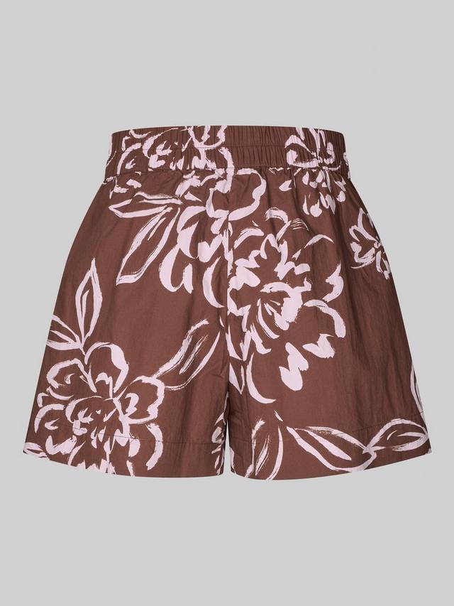 Женские шорты Second Female с принтом из гладкого хлопка с цветочным принтом по всей поверхности. Эластичный пояс, декоративная застежка на пуговицы и два потайных кармана в боковых швах. Широкие штанины обеспечивают свободную и удобную посадку.