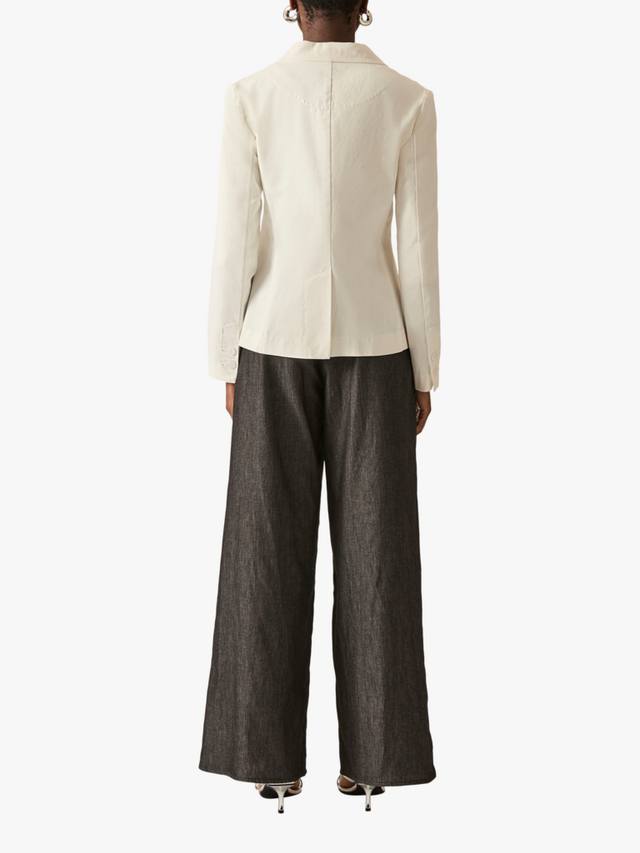 Подчеркните свой стиль с помощью джинсового блейзера от James Lakeland. Этот шикарный блейзер с воротником с заостренными лацканами, тремя металлическими пуговицами спереди, двумя большими передними карманами, разрезом сзади и декоративными пуговицами на манжетах идеально подходит для повседневных и изысканных образов. Изготовлен из хлопкового денима для комфорта и долговечности.