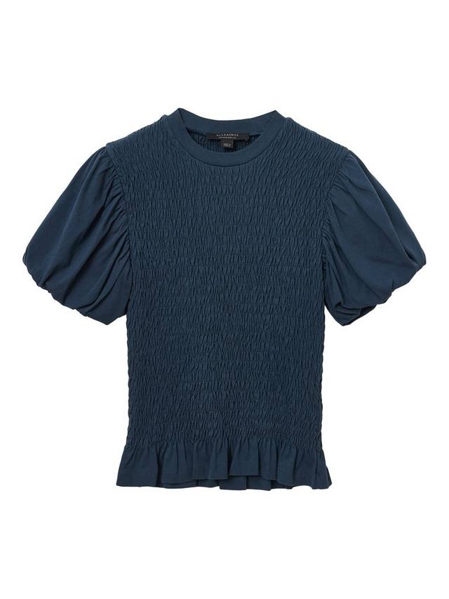 Этот топ AllSaints с круглым вырезом обеспечит комфорт и нотку индивидуальности. Он выполнен из органического хлопка, благодаря приталенному лифу со сборками, оборке по подолу и коротким рукавам-буфам, что делает его стильным и непринужденным.