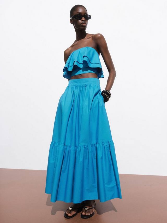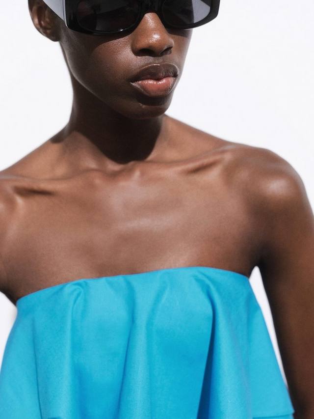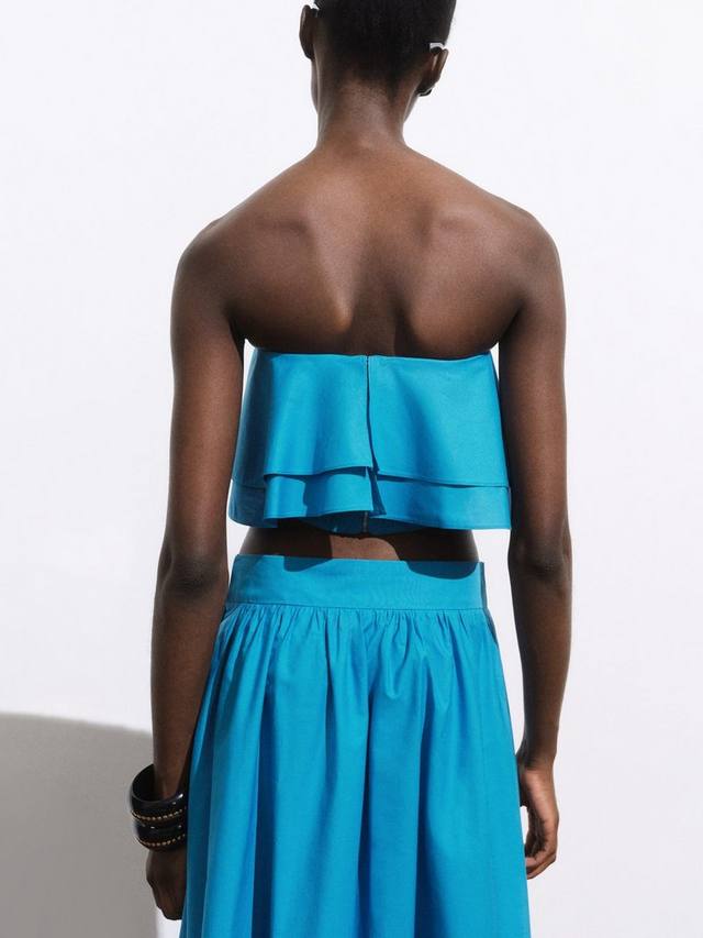 Укороченный топ Mango из хлопка, лёгкий и дышащий. С вырезом-бандо, однотонный, легко комбинируется с другими вещами. Легкий и свежий для солнечных дней.